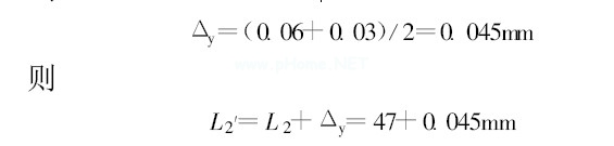 上述公式適用于被加工孔位于定位銷底孔下部的情況。若待加工孔位于定位銷上邊, 設(shè)計夾具時要將定位銷底孔到其它導(dǎo)向孔的距離減少Δy 。