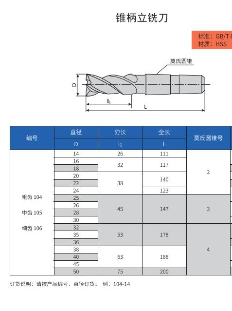 哈量錐柄立銑刀φ16 φ18φ20三刃高速鋼銑刀