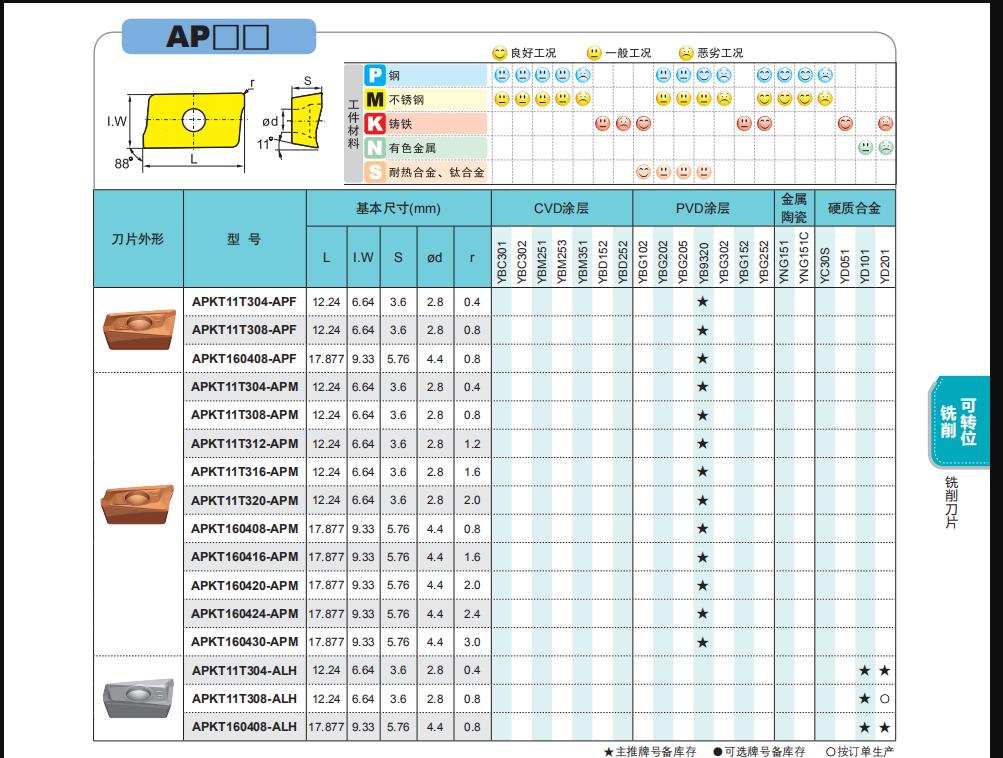 全新原裝株洲銑削刀片APKT11T308-PM YBG102鑄鐵pvd涂層